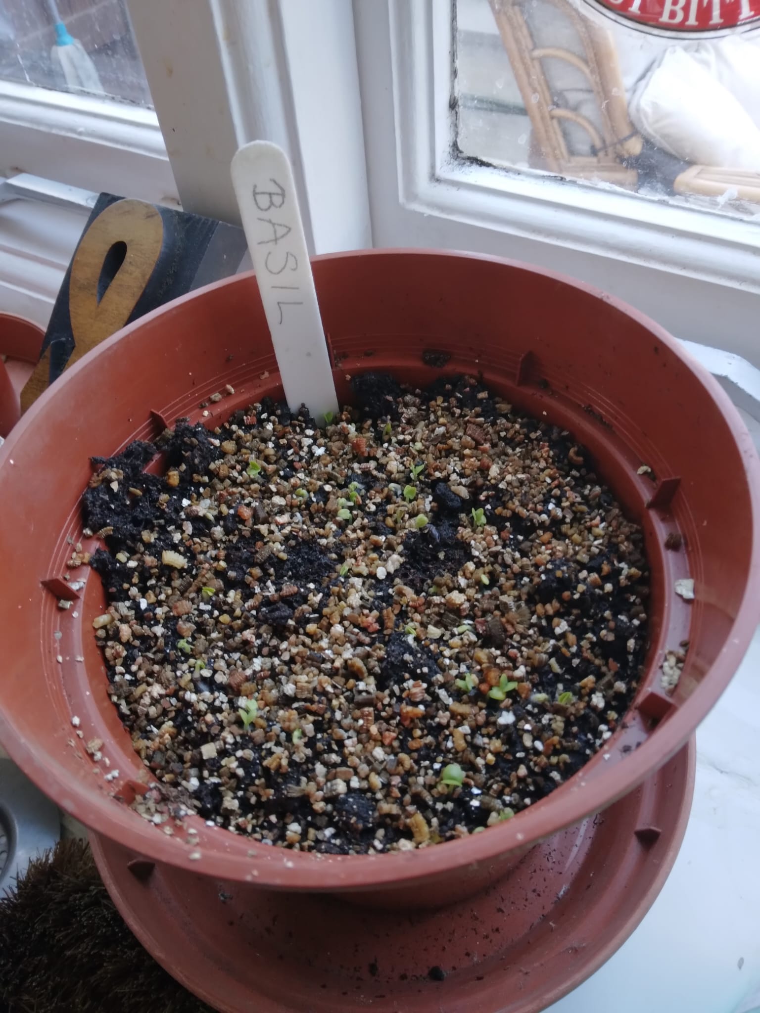 Another sunny day,  I’m feeling very hopeful. The basil seedling are getting bigger, I’d like to divide them between two pots as they get even bigger.