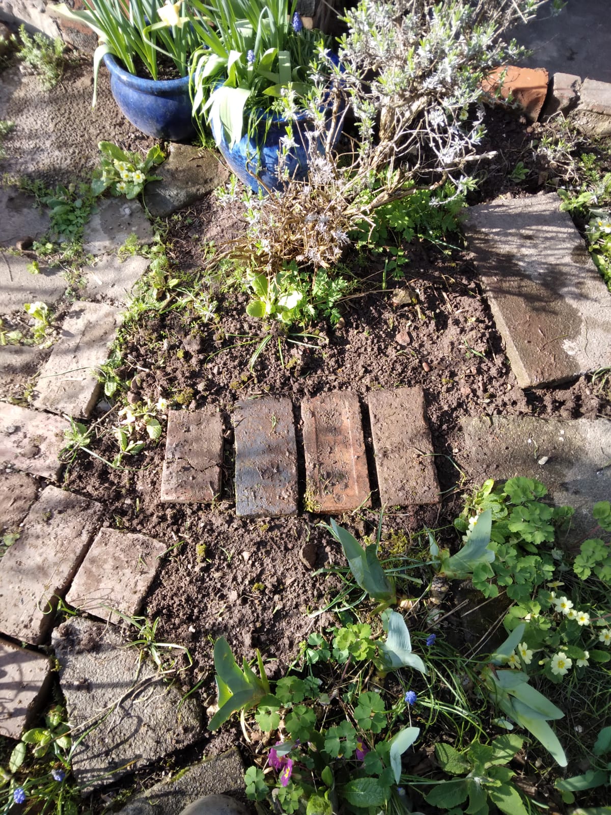 and the dill seeds I scattered between the brick in the little path.